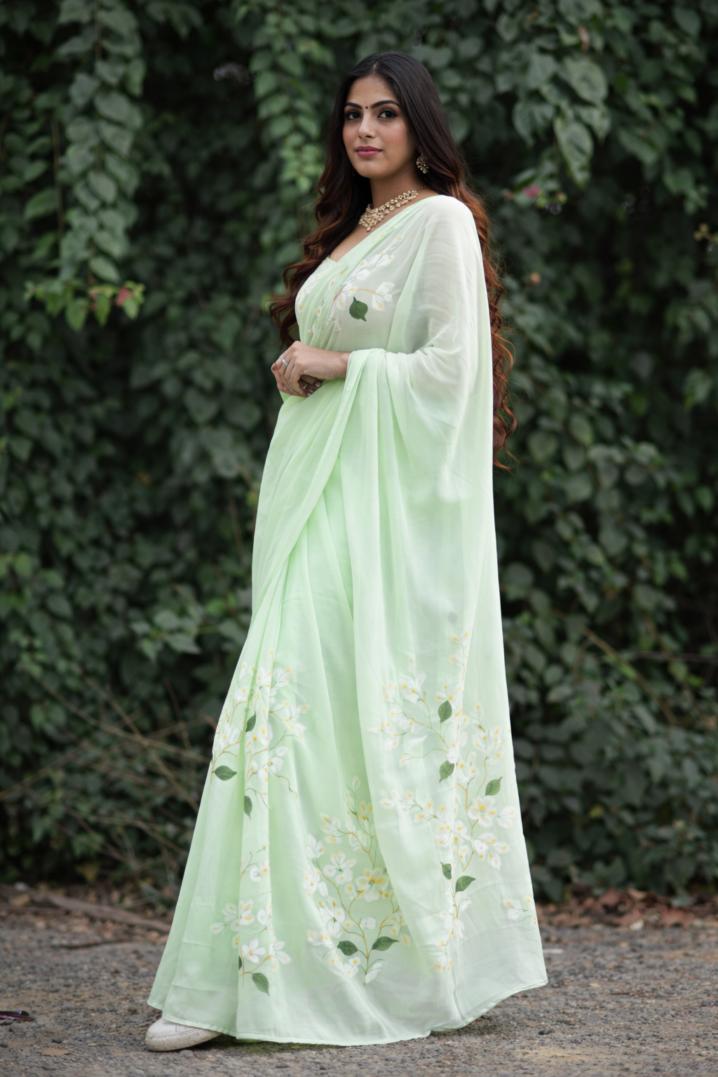 Exquisite hand-painted creations crafted from the finest fabrics. Discover artistry in every brushstroke, elegance in every drape.