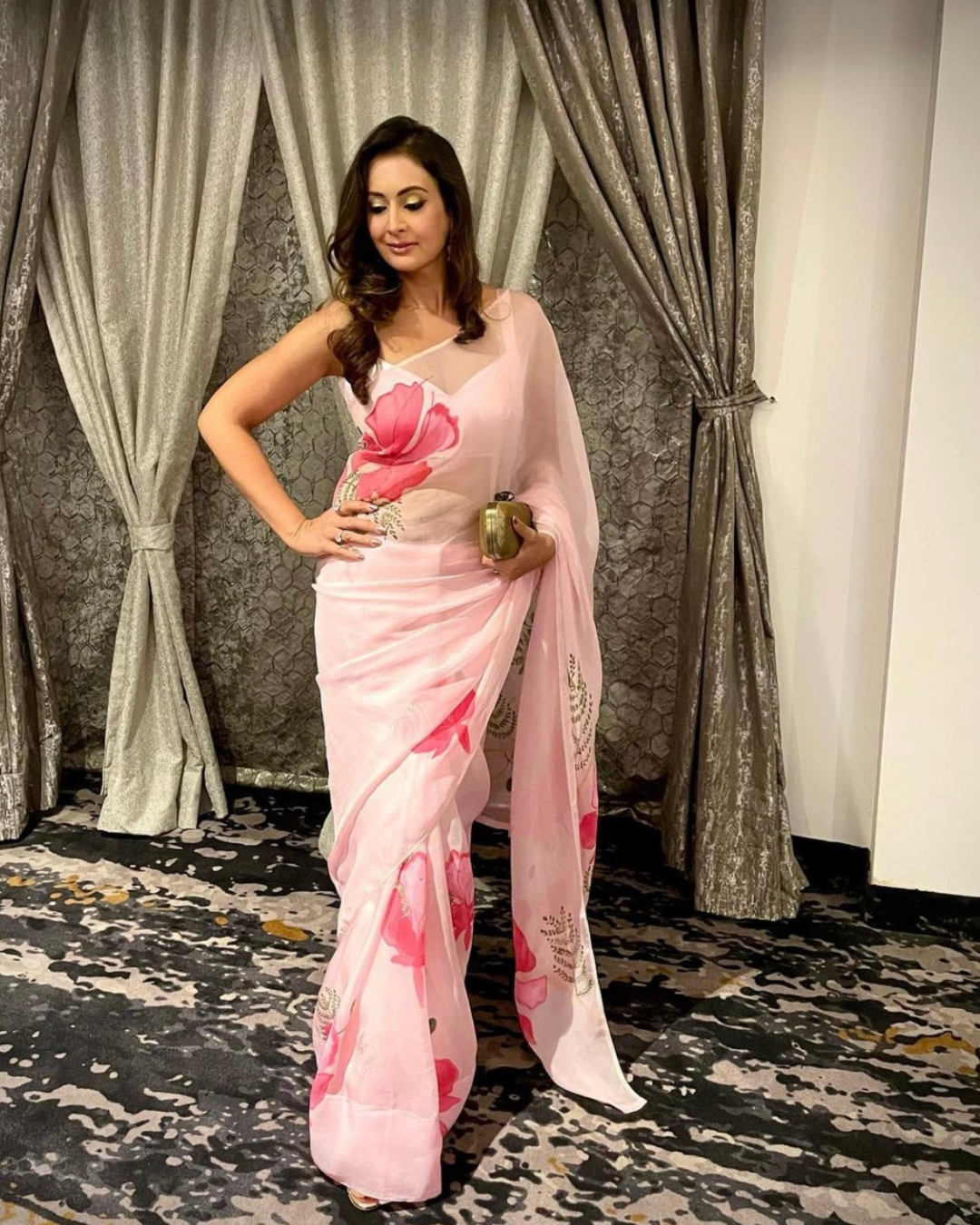 Romantic, radiant, and delicately bold — the Gulmohar Rose Pink Organza Saree captures the charm of blossoms in full bloom. Hand-painted pink gulmohar flowers unfold across a dreamy rose pink organza base, creating a tone-on-tone composition that feels feminine, graceful, and effortlessly elegant.